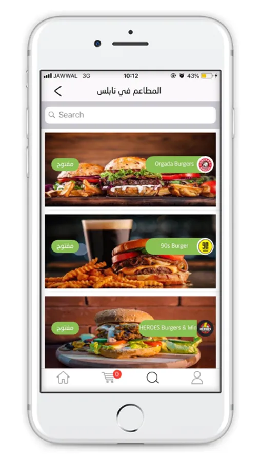 الوجبات: بإمكان العميل طلب العديد من الوجبات من مختلف المطاعم المتوفرة في التطبيق، وذلك باختيار اسم المطعم ومن ثم تحديد الوجبات المراد طلبها.