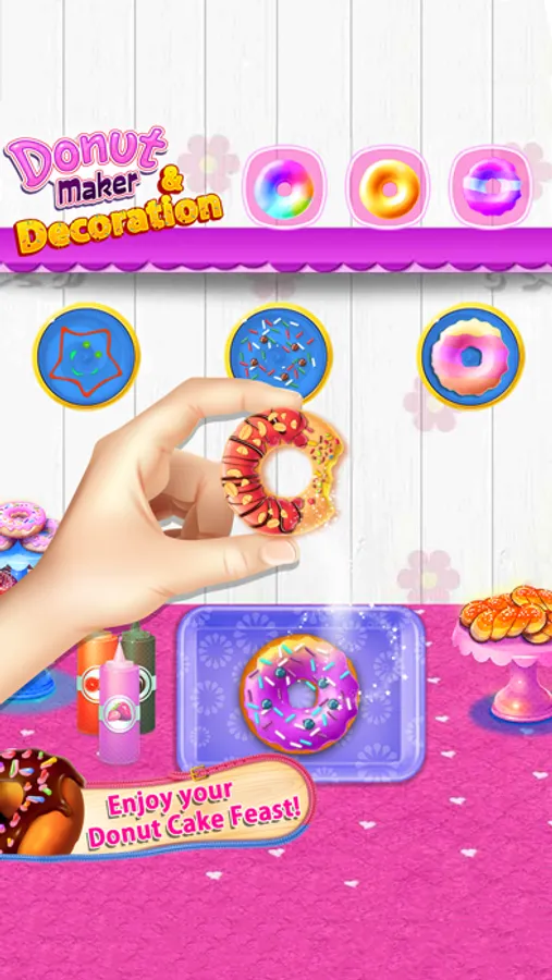 Welcome to the Donut Maker and Decoration! Here, you can make soft and sweet donuts by yourself. Have fun and learn how to prepare your favorite snack.