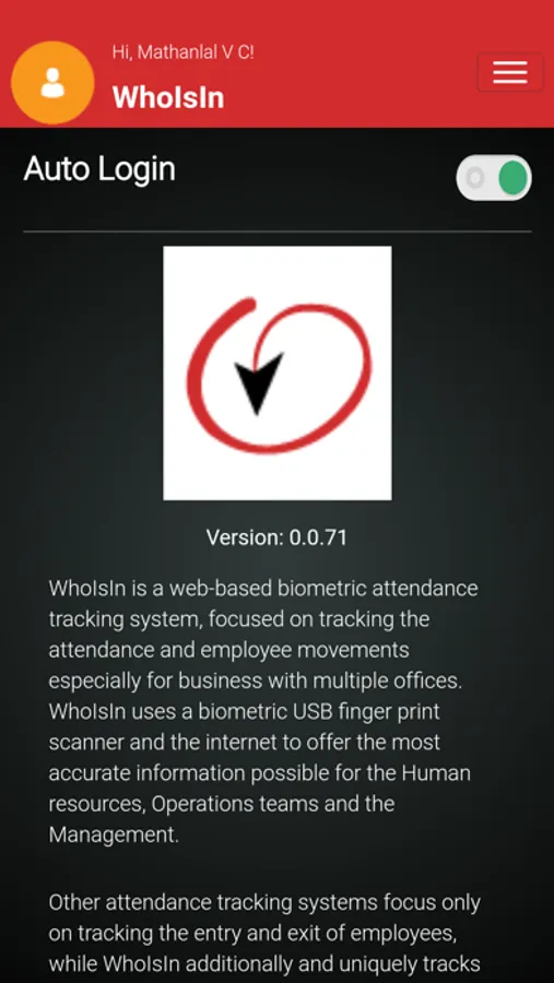 WhoIsIn is a web-based biometric attendance tracking system, focused on tracking the attendance and employee movements especially for business with multiple offices. WhoIsIn uses a biometric USB finger print scanner and the internet to offer the most accurate information possible for the Human resources, Operations teams and the Management. Other attendance tracking systems focus only on tracking the entry and exit of employees, while WhoIsIn additionally and uniquely tracks the presence of the employee in the office too. WhoIsIn is offered on a Software-as-a-Service (SaaS) model, where there is no capital expenditure (on the Hardware & Software), but only operational expenses. The charges are calculated based on the number of employees, devices deployed etc.