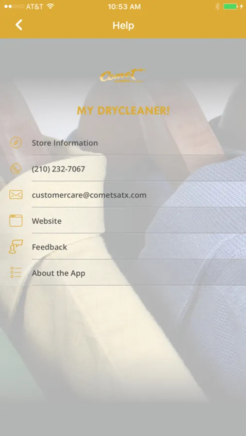 5) Quickly contact Comet Cleaners by phone or email and access their website all directly from your device.