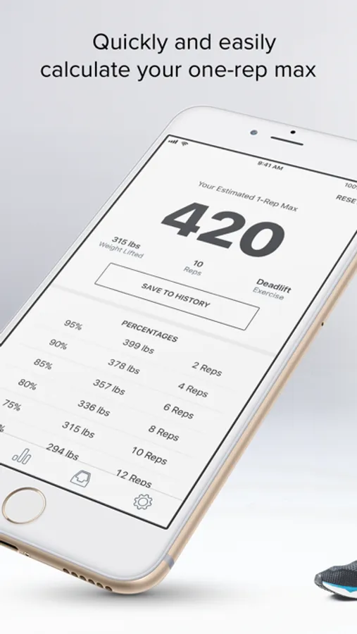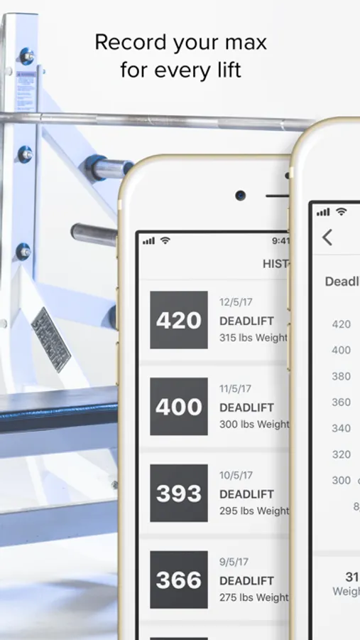 · Track and chart your 1RM history for each type of lift