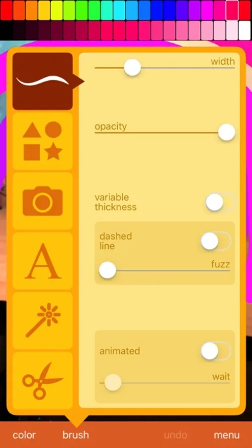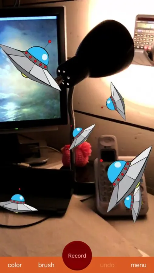 Simple controls let you specify details like dotted lines, glowing lines, or pressure-sensitive brushstrokes. Turn on animation to record shape paths as you trace in the air. Choose from hundreds of colors and draw at varying levels of transparency. Choose photos from your image library and add them to the scene! Save and load your creations to display them in different environments.