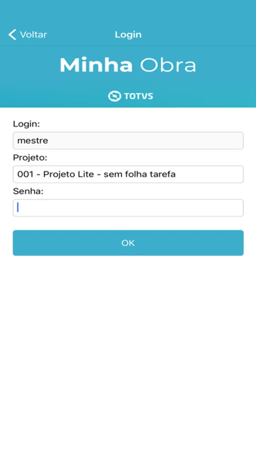 O app Minha Obra é compatível a partir da versão 12.1.25 do TOTVS Construção Obras e Projetos.
