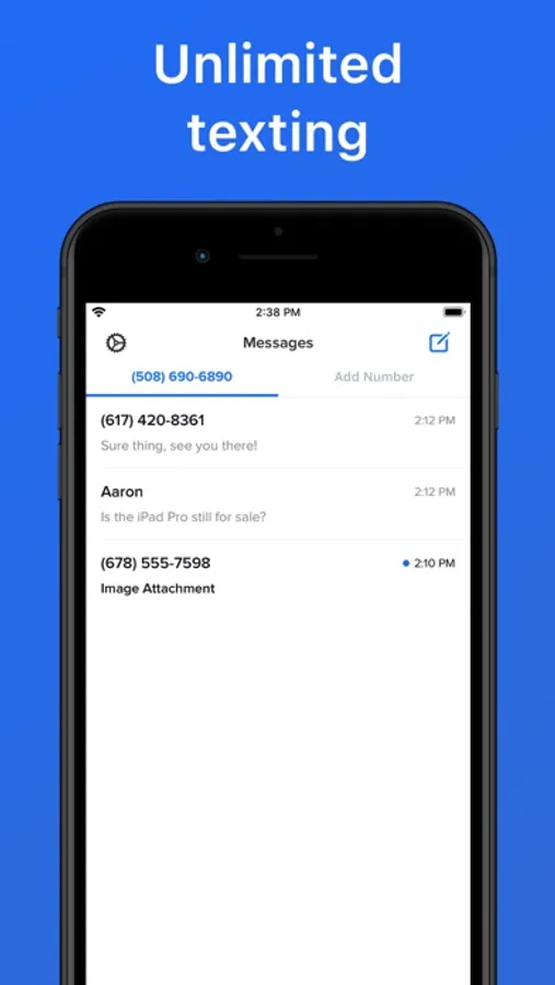 Send and receive unlimited text messages to any US phone number. This includes photo messages!