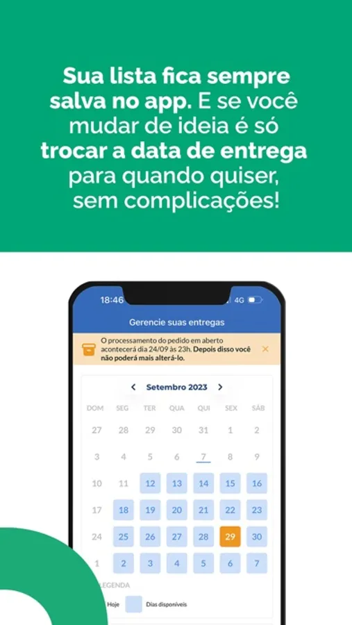 Com o App da Shopper você pode fazer ajustes em sua cesta e alterar a data de entrega de qualquer lugar, a qualquer hora.