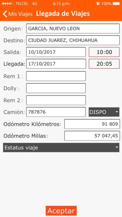 La aplicación MIS VIAJES permitirá al operador poder registrar los viajes en el lugar donde este cargando, quedando registrados de manera inmediata en el sistema de operación dándole la funcionalidad de dar salida y llegada al viaje, así como también permitirá cargar documentos de evidencia además de comunicarse con el área de tráfico por medio de notificaciones.