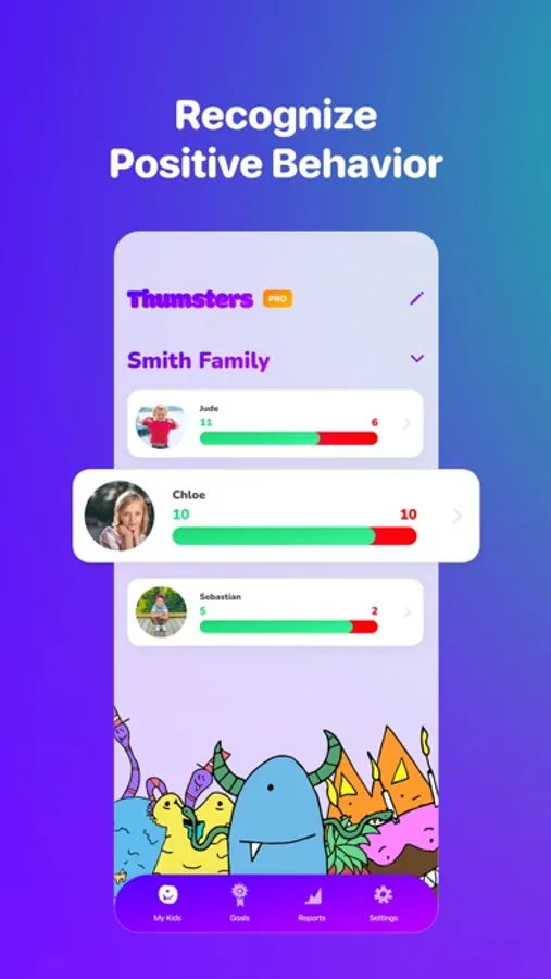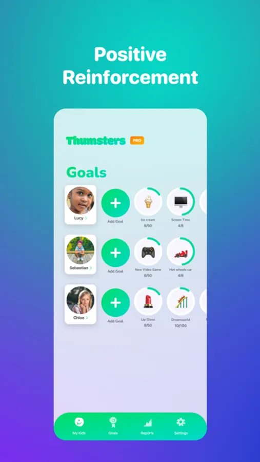 Stay consistent with your parenting by sharing Thumsters across multiple devices. Goals, thumbs, and reports sync in real-time.