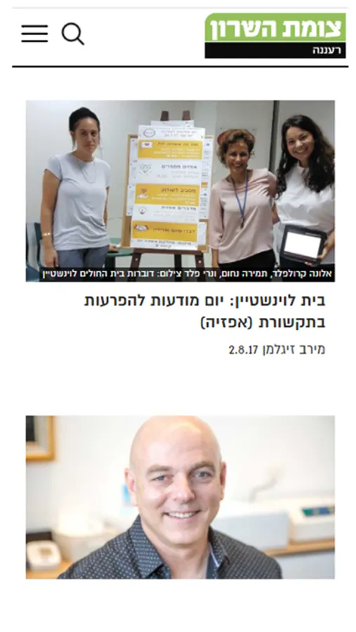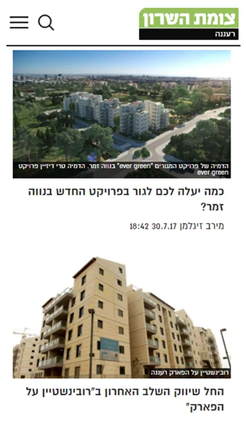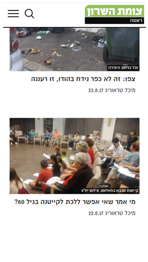 "צומת השרון רעננה" - האפליקציה של העיתון המקומי המוכר, הפופולרי והוותיק. מאז שנוסד העיתון הוא שומר על מקומו ככלי תקשורת חוקר, מעמיק ומעורב העוסק בכל היבטי החיים ברעננה ובסביבה. אתר האינטרנט והאפליקציה פועלים במשולב עם העיתון כדי להביא לגולשים תוכן מעודכן בזמן אמיתי בכל תחומי החדשות – איכות הסביבה, החינוך, הבריאות, הנדל"ן, התשתיות, הפלילים, התחבורה, התרבות והספורט. כמו כן עוסק האתר ברכילות, אירועי פנאי ובצרכנות ומספק לקוראיו מאמרי דעה, טורים אישיים, מדורים מיוחדים והמלצות לכל הדברים המעניינים שקורים בעיר.