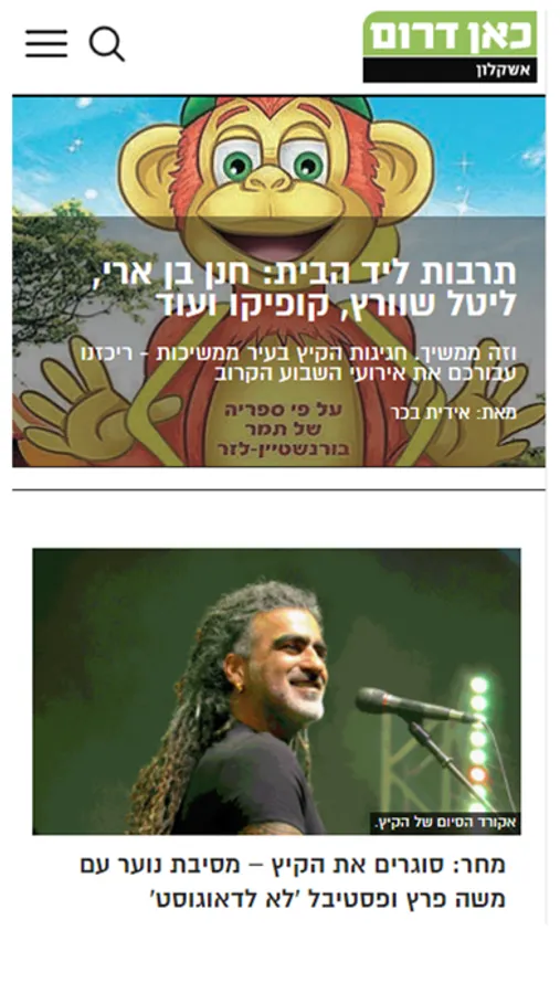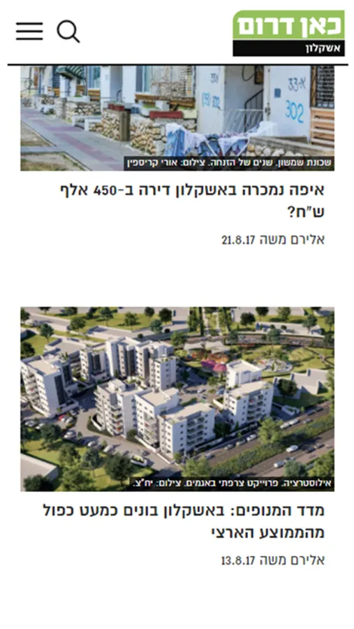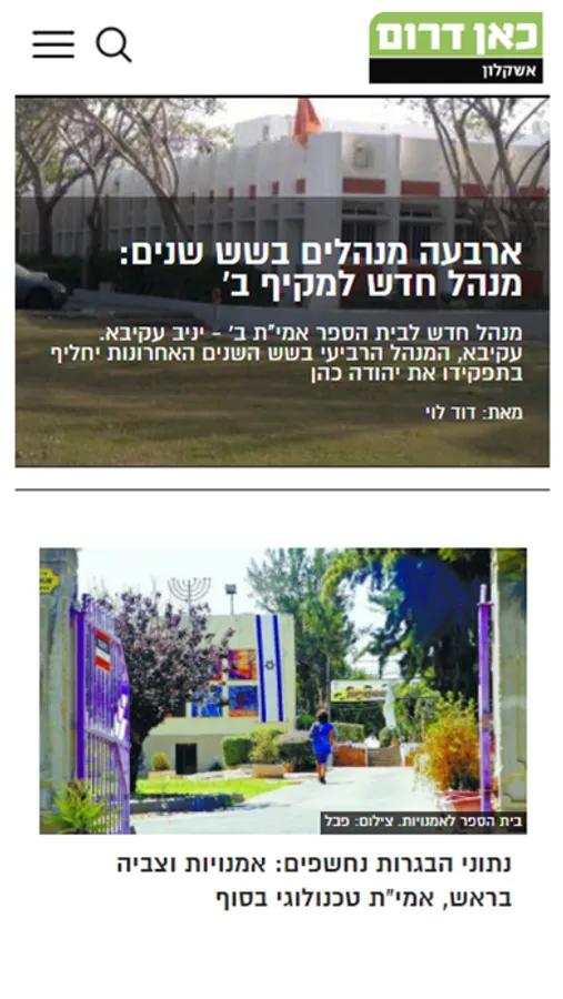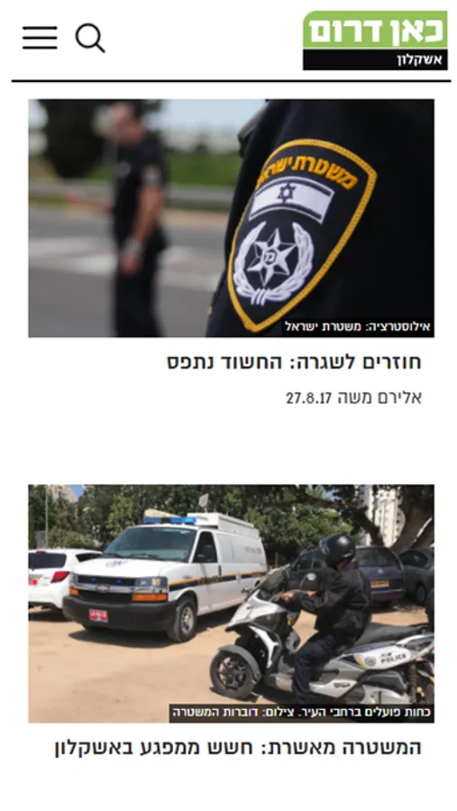 "כאן דרום - אשקלון", האפליקציה של העיתון המקומי המוכר, הפופולרי והוותיק. מאז שנוסד העיתון הוא שומר על מקומו ככלי תקשורת חוקר, מעמיק ומעורב העוסק בכל היבטי החיים באשקלון ובסביבה. אתר האינטרנט והאפליקציה פועלים במשולב עם העיתון כדי להביא לגולשים תוכן מעודכן בזמן אמיתי בכל תחומי החדשות – איכות הסביבה, החינוך, הבריאות, הנדל"ן, התשתיות, הפלילים, התחבורה, התרבות והספורט. כמו כן עוסק האתר ברכילות, אירועי פנאי ובצרכנות ומספק לקוראיו מאמרי דעה, טורים אישיים, מדורים מיוחדים והמלצות לכל הדברים המעניינים שקורים בעיר.
