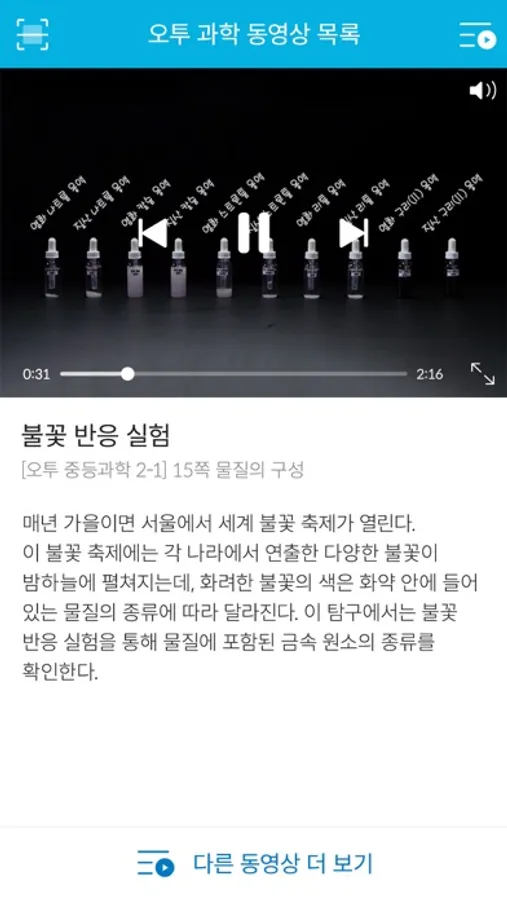 실험 과정부터 원리 설명까지 동영상으로 쉽고 재미있게 배울 수 있습니다.