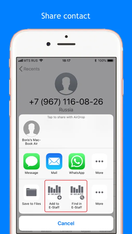 On each incoming call application verifies number against internal candidates and contacts database. If found you would see notification on incoming screen. This allows you to quickly identify calling person. Also you can add phone number to the EStaff database from calling log.