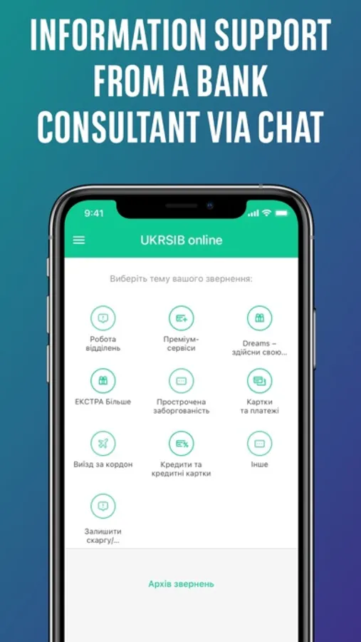 The majority of banking operations no longer require a visit to UKRSIBBANK branch: a personal manager helps you in a chat to resolve your issues remotely and in a convenient secure chat.
