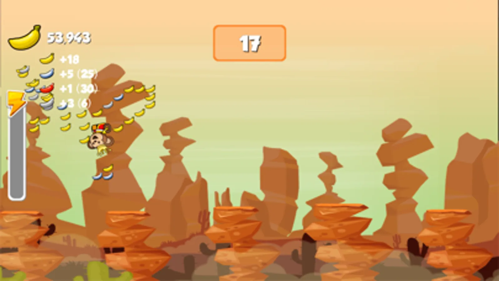 Run, jump, and swing from pillar to pillar to help Sam survive the inferno and boost your score. Pimp your primate by collecting bananas to unlock new items such as head and body adornments, and buy in-game power-ups. Once you hit a gorilla-thriller of a score you can barter with bananas and unlock maps.
