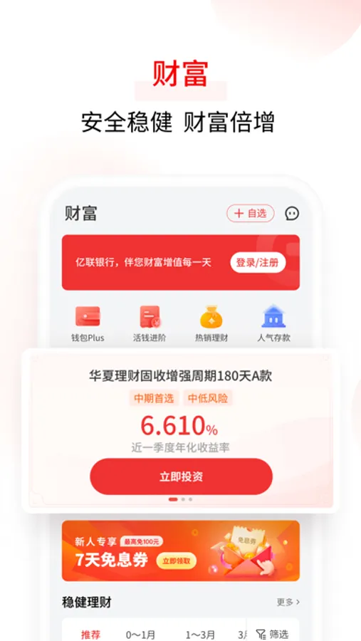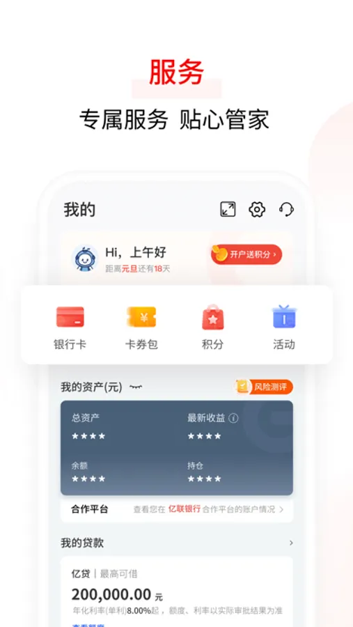 为您提供银行存款、投资理财、保障保险、信用借款等一站式金融服务。
