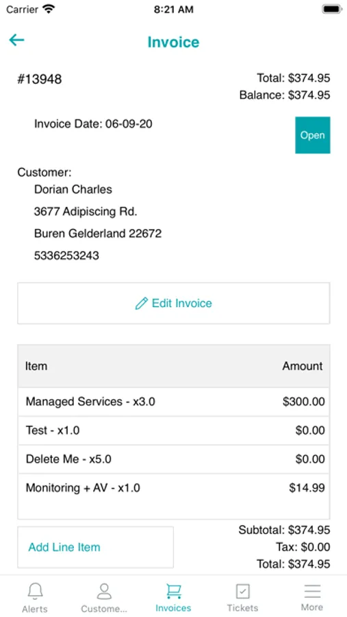 Quickly look up any of your open invoices, select a payment method, and take payment.