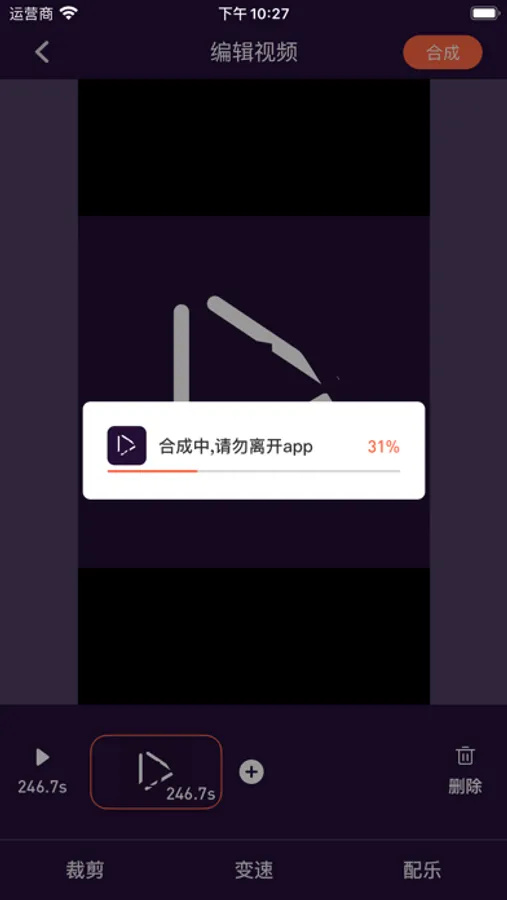 1. 视频编辑: 支持对视频进行裁剪、拼接、变速、替换背景音;