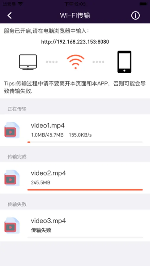 2.文件传输: 支持通过iTunes和WIFI传输电脑文件到APP,以及下载APP文件到电脑;