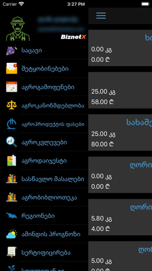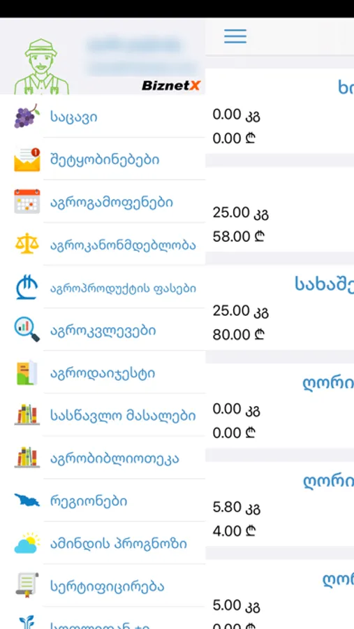 • Monitoring of the weekly prices established for agro products and their statistical changes