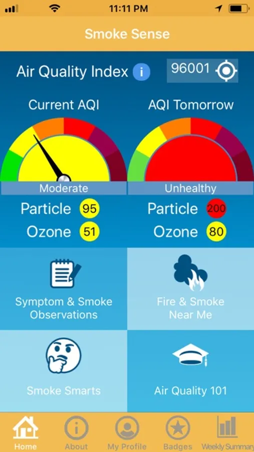 The Smoke Sense mobile app is designed to pilot a citizen science study about the impacts of wildfire smoke exposure on health. Citizen scientists can use the app to learn about wildland fires and smoke health risks in their area. They can report their health symptoms, and the range of actions they are able or willing to take to improve their health condition or lower their exposure. Users will earn badges each week they participate.
