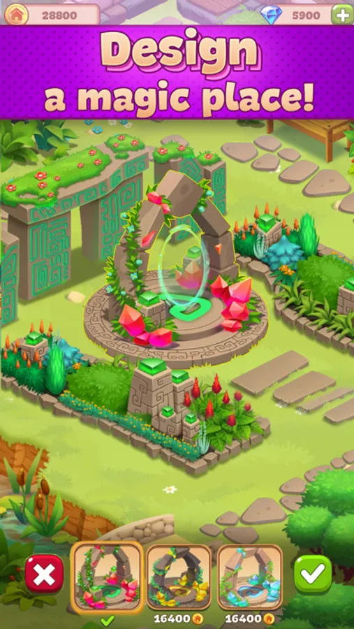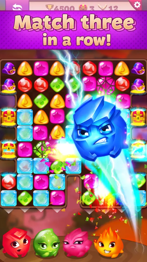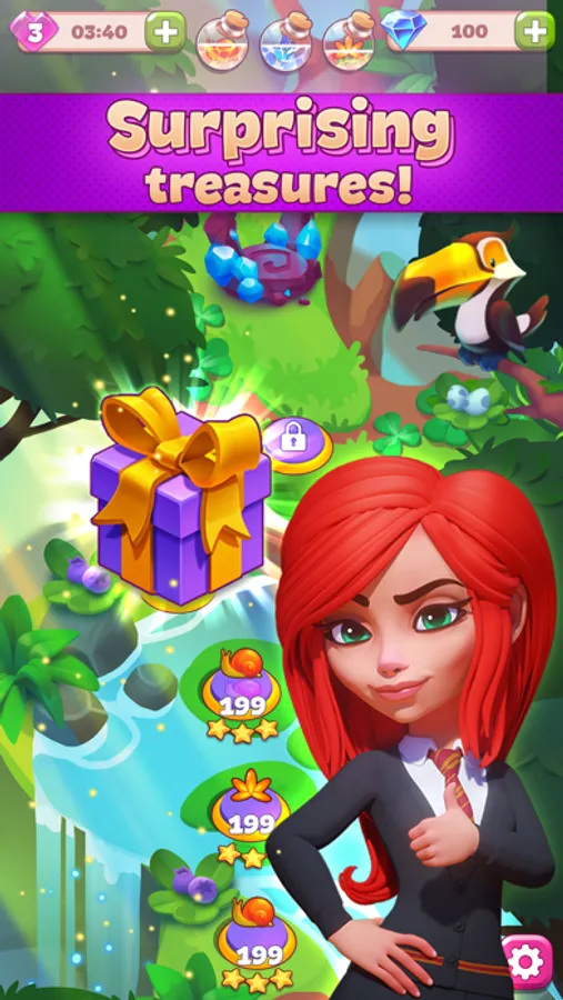 “Little witch Selena has already sorted all charms to make it easier for you to collect them three in a row. By the way, you can combine more than three which is even better - just one easy movement of your finger and several charms turn into… an amulet! An explosion of a chain of amulets is a magnificent fairy show that makes Selena jump joyfully! When this happens, her assistant Batsy, a cute bat, flaps her wings so fast that she isn’t even allowed on the game screen - she could easily brush all the stones off the field and make it impossible to count the points. And it is very important to keep track of them as at the end of each level one receives a reward depending on a number of points scored.