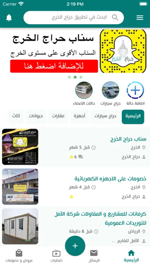 تطبيق حراج الخرج خاص لمحافظة الخرج وضواحيها في بيع وشراء السيارات وعرض جميع السلع وكذلك العقار وبيع المواشي والاجهزه والخدمات ،،، جميع ما يطلبه الفرد