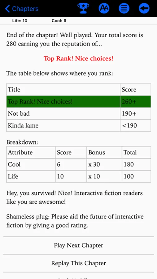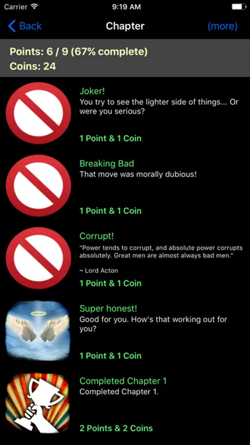 49 chapters of gritty adventure and white-knuckled suspense. Over 100 achievements, from the silly to the challenging and of course TONS of interesting choices.
