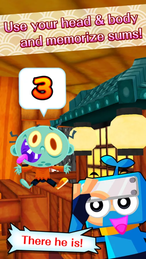 Explore every nook and cranny of the 3D Ninja World to find the villager with the correct answer to the math question. Physical movements of stretching, bending, squatting, crawling, reaching and peering will stimulate a child’s memory whilst providing a parent an opportunity for easy exercise.