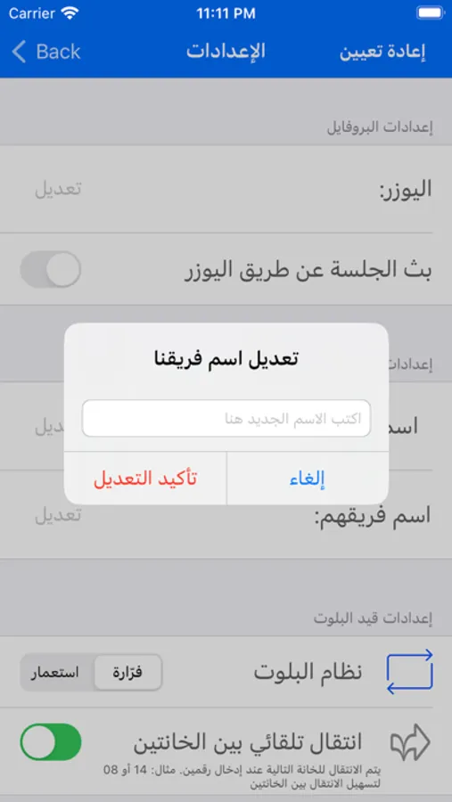 - إضافة ميزة تغيير أسماء الفريقين لمساعدة متابعين النشرة على معرفة الفريقين بدلاً من (لنا-لهم)