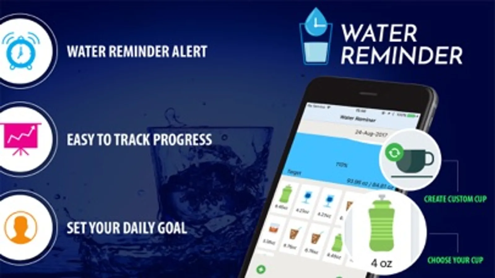 This daily water intake reminder app is here to fulfil your body need and prevents you from dehydration. It’s a simple reminder and tracker app specially designed for busy routine people. It will remind you to intake water that will help to improve skin, disperse metabolism, keep body fit and get a better healthy life style. Don’t need to remember timings or recheck your watch or cell phone. Alarm will remind you to drink water in time.