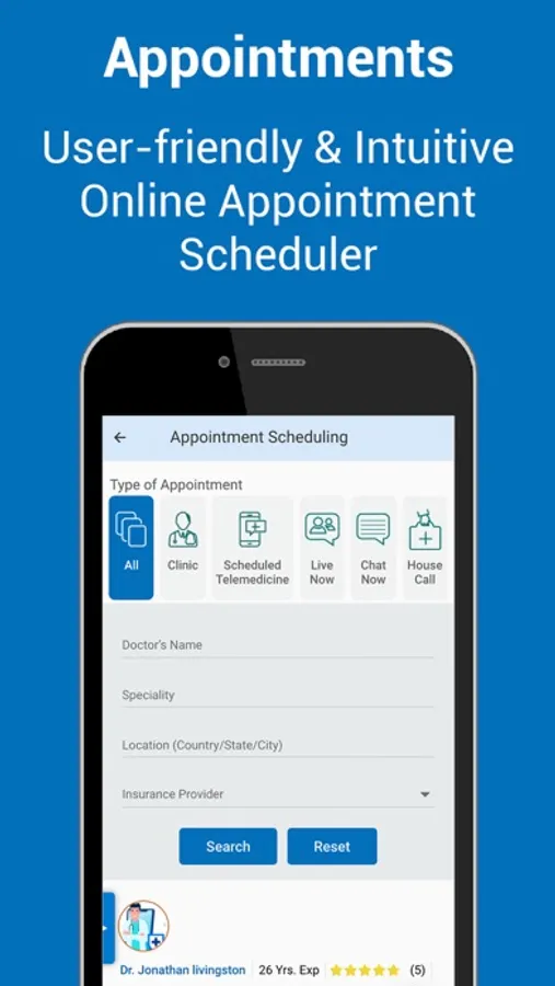 a) Appointments: Book doctor appointments, both clinic and on-line Telemedicine consultation.