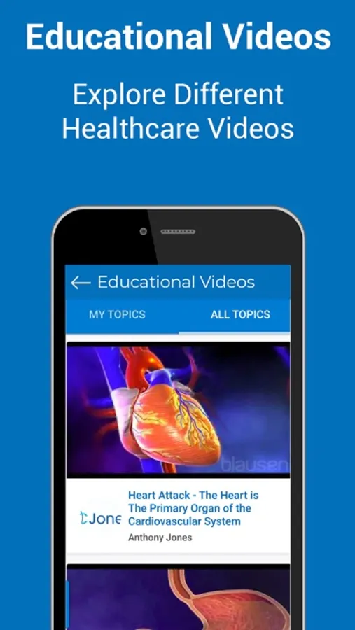 f) Videos - A section containing Educational Videos is provided to you consisting of material posted by doctors, hospitals and healthcare related businesses based on topics of interest to you.