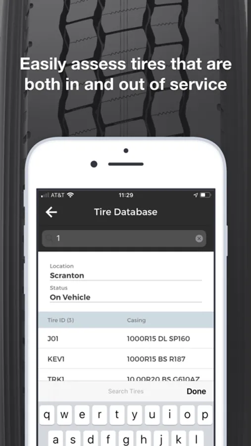 Increase your productivity when maintaining the tires on your fleet of vehicles. With Toolbox Touch you can easily perform inspections on the tires in your fleet and quickly see data on tread depth, inflation, and tire conditions. Send reports analyzing the tire data of your fleet including trends in maintenance, patterns of wear, and critical maintenance issues requiring immediate attention.