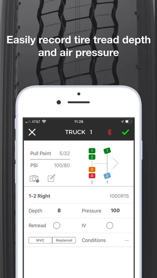 • Easily record tire tread depth and air pressure with a Bluetooth-connected probe
