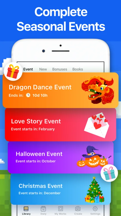- Take part in the events, color unique thematic pics and get original artworks & boosters!