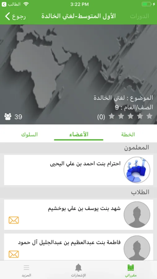 • تلقي الإخطارات والاشعارات للمهام المقدمة واحداث المقررات التى يقوم المعلم بتدريسها وأكثر من ذلك