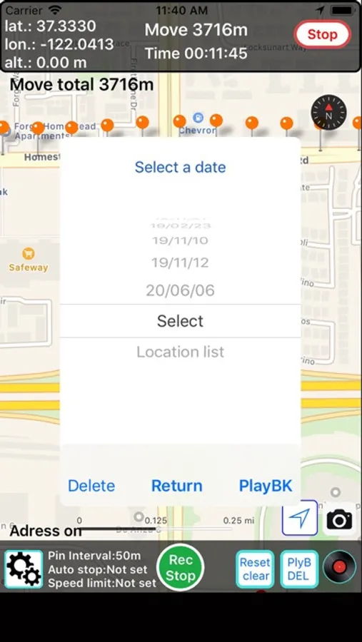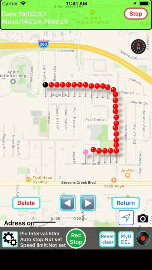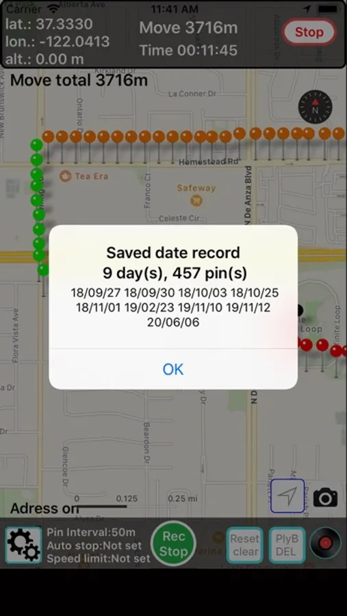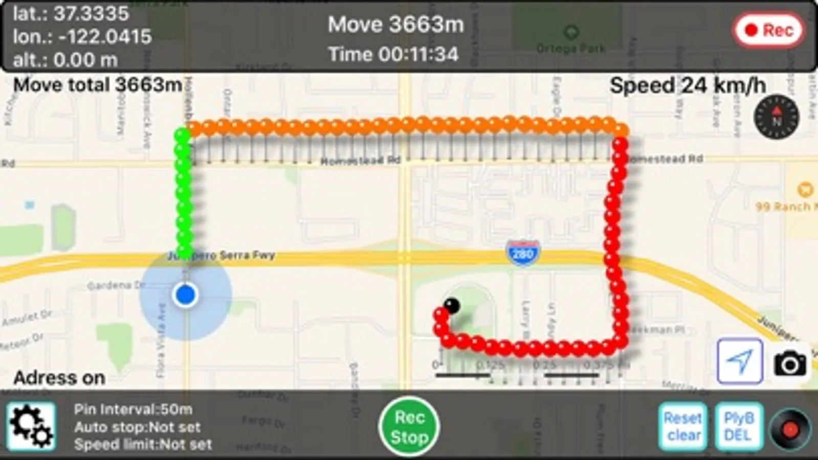 The route you walked and moved is recorded with a pin, and it moves at set distance intervals.