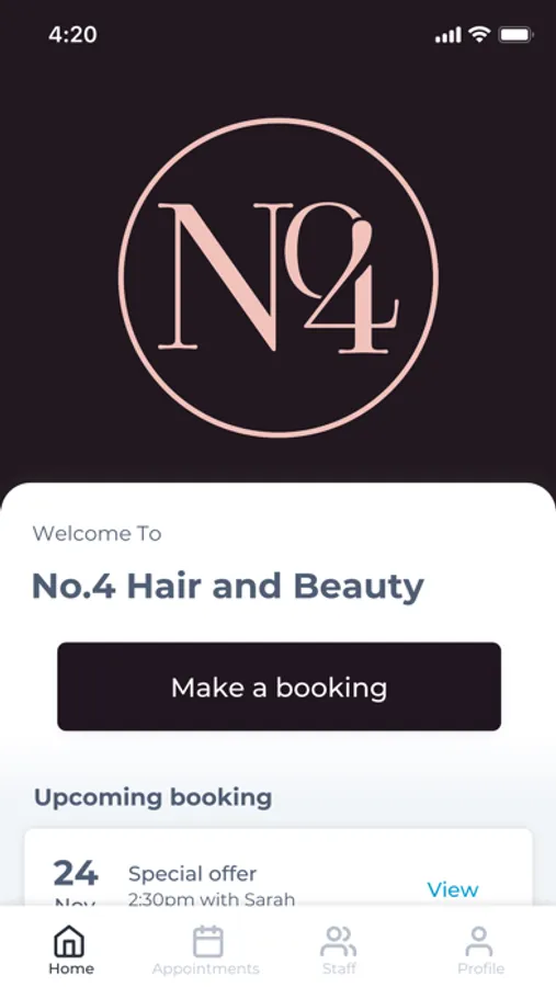 The No.4 Hair and Beauty app makes booking your appointments and managing your loyalty points even easier. You're just a few taps away from feeling good and looking great!