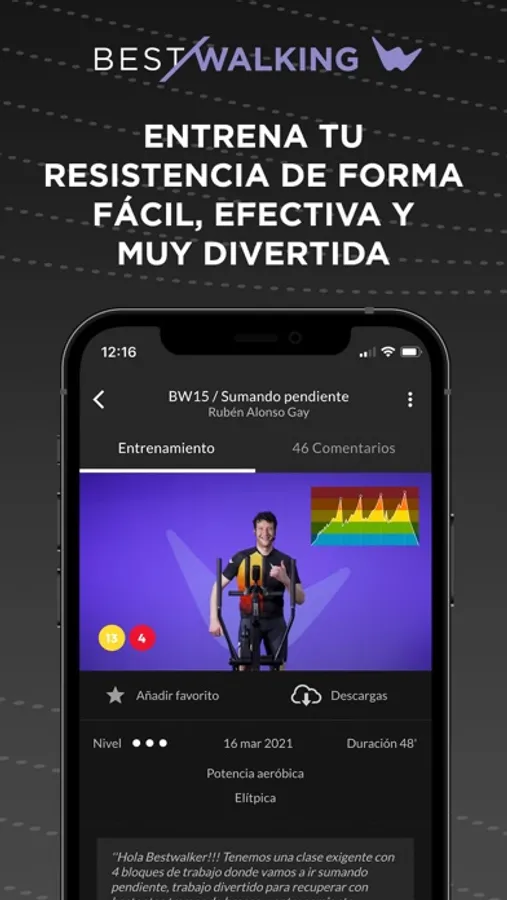 • Bestwalking: Entrenamiento usando una elíptica, de menos impacto y más sencillo de seguir. Fácil, accesible, efectiva y divertida gracias a la música y la motivación de los instructores.