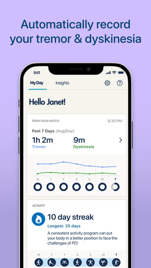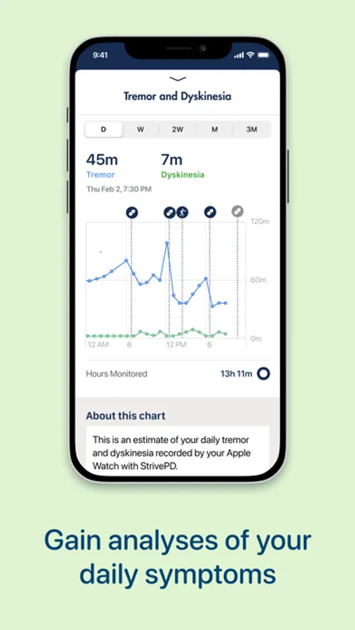 StrivePD is designed with and for people with Parkinson’s who strive to live fully. Integration with HealthKit and use of Apple Watch provide passive metrics which augment self reported logs for a holistic view of your daily health & care journey