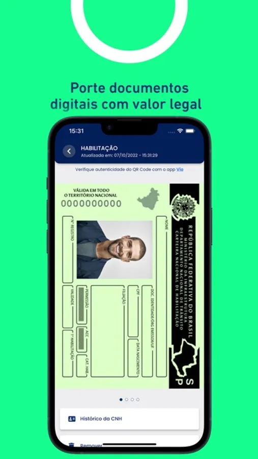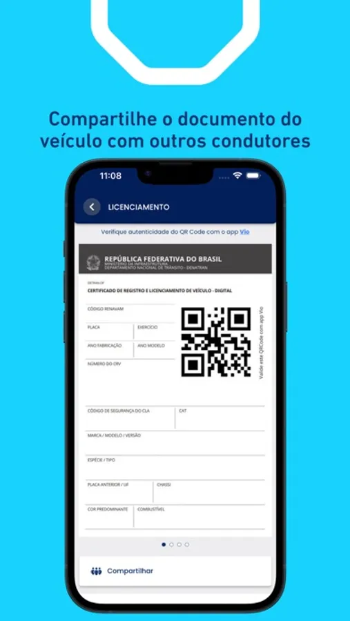 - Pode ter sua autenticidade, confiabilidade e integridade validada facilmente através do aplicativo Vio. Para isso, basta baixar o app Vio e apontar o leitor para o QR Code do seu documento digital.