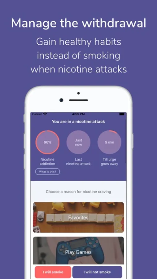 When you want to smoke, it means that you are having a nicotine attack. Nicotine receptors in your body are crying for more. But if you can wait for 6-7 minutes at the time of an attack, the urge to smoke will pass. Beat Smoking app is designed to give you healthy things to do instead of smoking.
