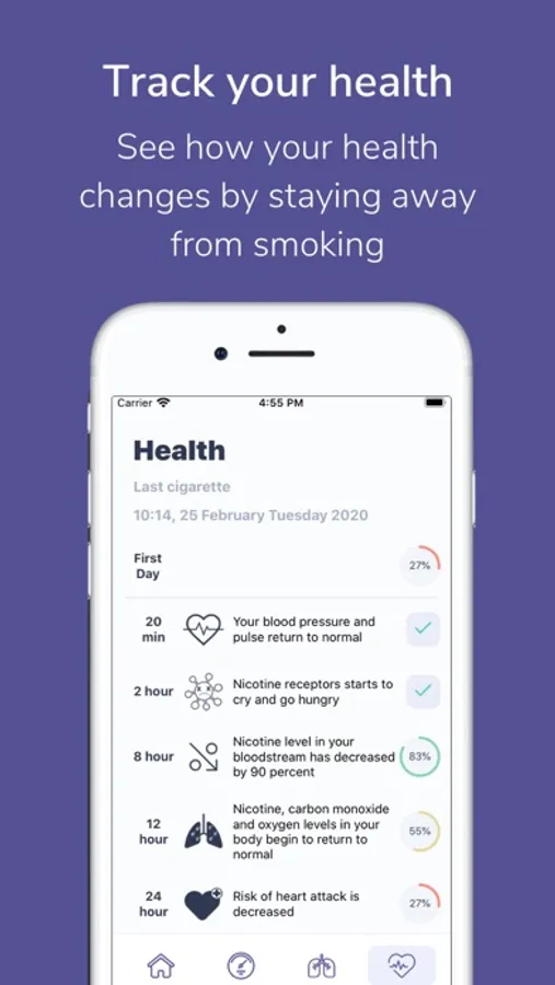 You can track your nicotine level and nicotine attack intervals. These tracking algorithms are based on scientific researches and help you get rid of your addiction more easily.