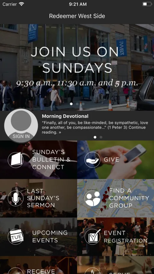 This app is a great way to get connected to your Redeemer church (East Side, West Side, Downtown or Lincoln Square).