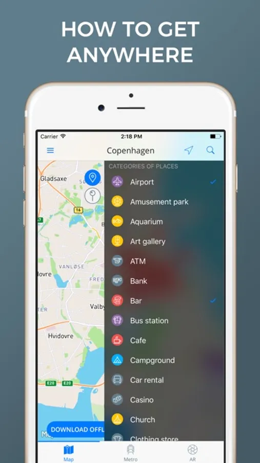 Offline functionality, transport routing, places information and AR are offered as in-app purchase