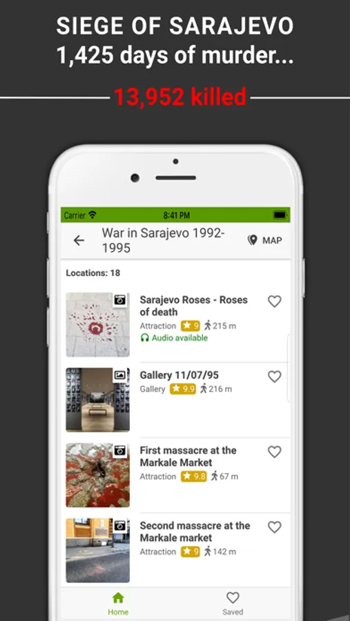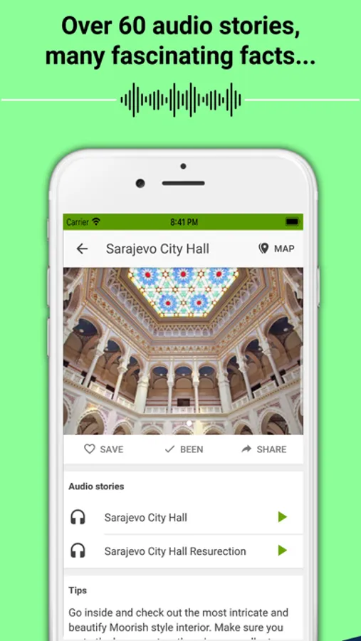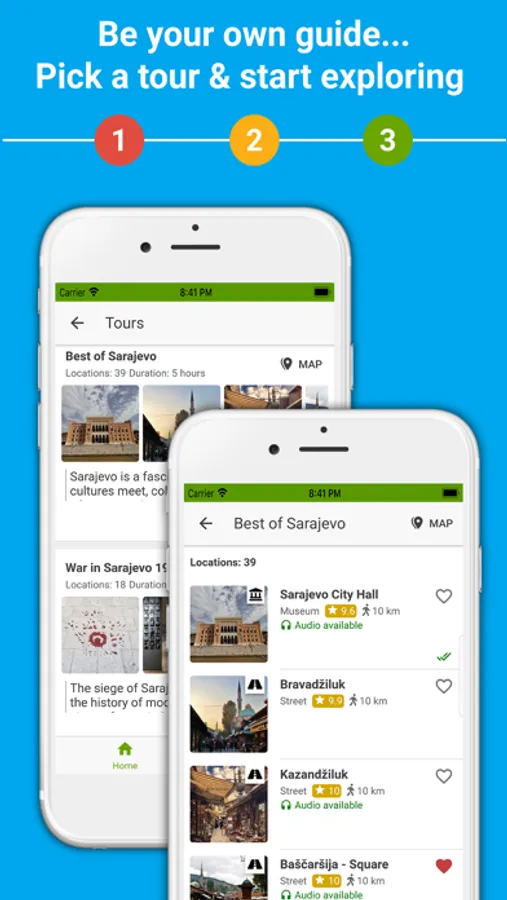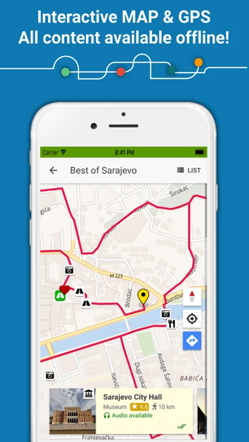 With over 3 hours of quality audio stories (ALL available OFFLINE - no internet required) organized into ready-to-go tours and Sarajevo offline map with GPS tracking, you can easily navigate the city and discover Sarajevo’s rich & turbulent history on your own.