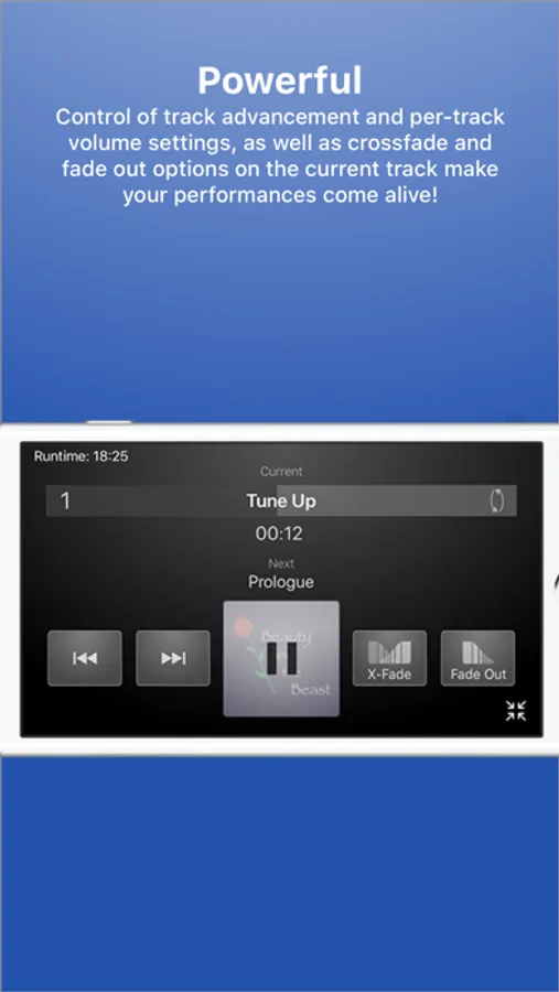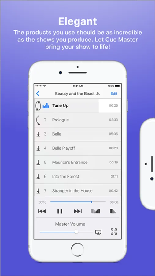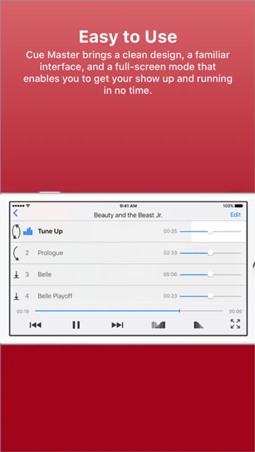 Unlike many cueing apps available, Cue Master is designed to be extremely easy to use and understand with the familiar layout of a standard music app. Unlike a music app, Cue Master allows for custom control over how songs are played back. Songs can be set to loop (repeat), stop at end, continue to the next song, or be skipped. Volume levels can also be easily set on a per song basis to fine tune your performance.
