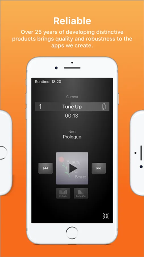 For performers that need easy access from the stage, Cue Master provides a full screen mode to easily see the currently playing track and time, show run time as well as the next cued track. A central cue button also allows you to easily start your next track.