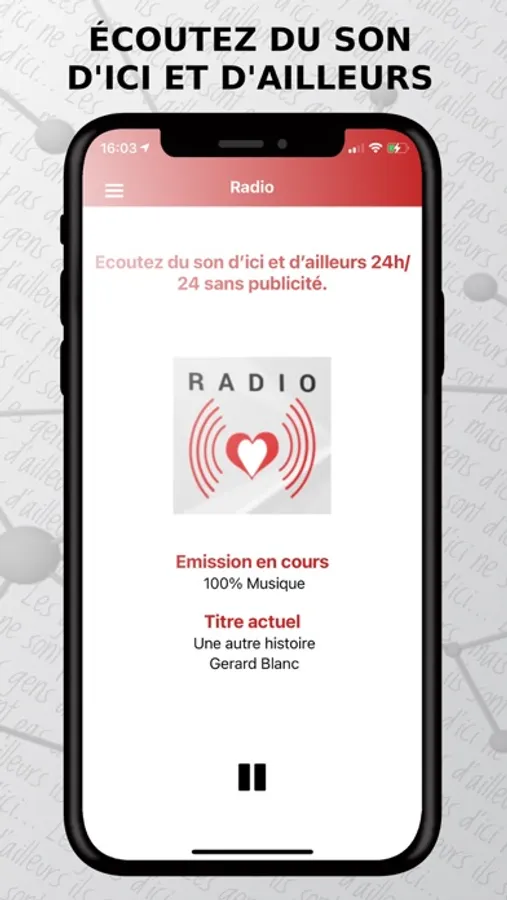 La web radio des gens d'ici est accessible à l'écoute via l'application mobile. Sa programmation est composée à 75 % de groupes locaux, 24h/24. Vous pourrez y découvrir les talents de nos musiciens locaux aux styles bien différents.
