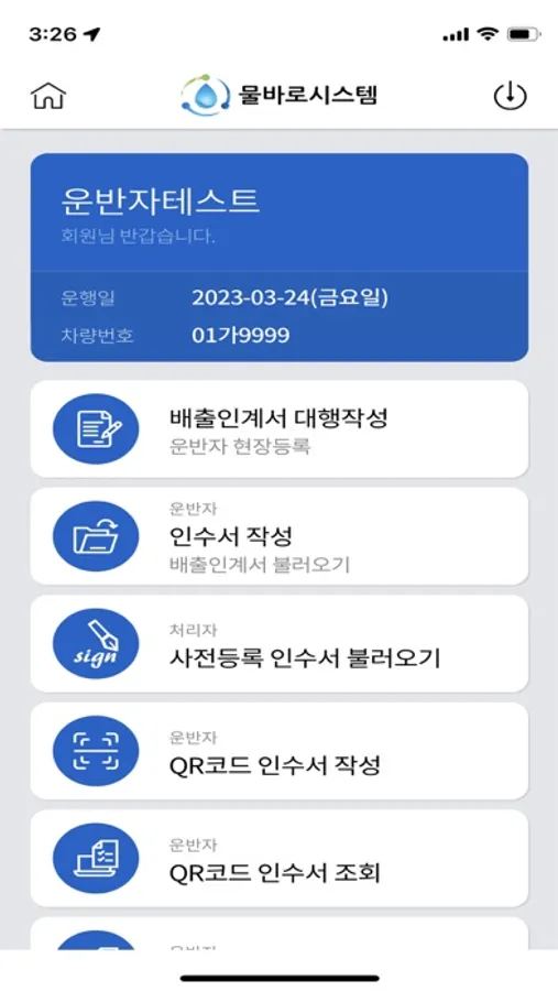 폐수 처리사업장 운반자와 폐수 배출사업장 담당자가 사용하는 시스템으로서 위탁폐수의 인계인수 내역을 모바일로 등록하여 현장에서 종이서류 없이 체계적이고 투명하게 업무를 수행할 수 있습니다.