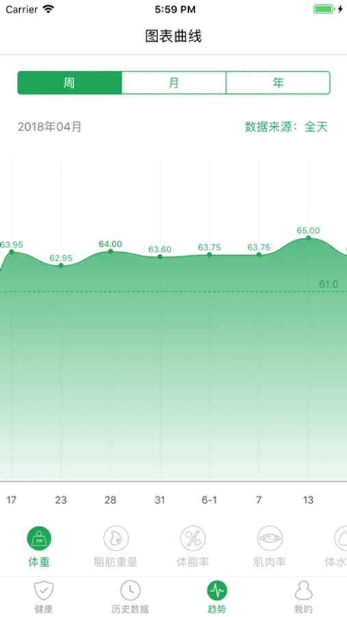 在ios8以上,当您使用“天天轻”支持的智能设备测量后,体重、体脂率、去脂体重、身高体重指数(BMI)、身高和静止时消耗的卡路里数据将会同步到HealthKit中。